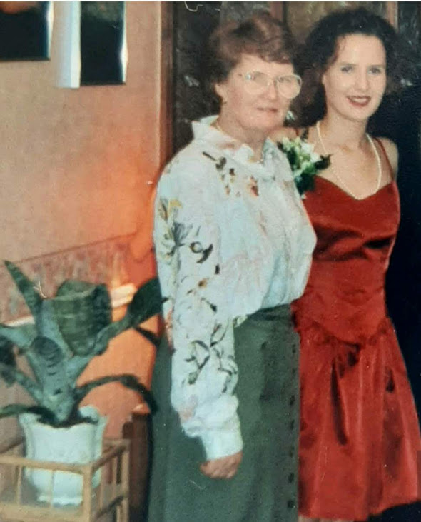 There is a nice thread on Twitter today where people are remembering their mothers. This is my mum. I don’t often write about her. Actually, I never do. But today seems like a day to do so. This photo was taken before my Debs and I’m wearing a dress she made. I remember how certain I was that I wanted to wear a “cocktail” dress although the norm was to wear full-length dresses, and that I wanted it in a colour I called “burnt orange”. So together we went and bought the material and my mum made my dress exactly as I wanted. I have no photos of our trip to Hickeys to buy the fabric – I guess today we’d have taken a selfie on a trip like that, and one of our tea and cake after. I have very few photos of me with my mum. And after twenty-four years, memories can be tricky too. I do remember that she was camera-shy. A behind-the-scenes person quietly making everything better but never making a fuss. She always put herself last. She put up with all sorts of things without complaining, including stroppy teens. She was extraordinarily kind. Like, famous-in-the-neighbourhood kind. But never looked for attention or fuss or thanks. She was a dressmaker and a peacemaker. She’d have been an utterly perfect grandmother. I don’t need photos to know that.