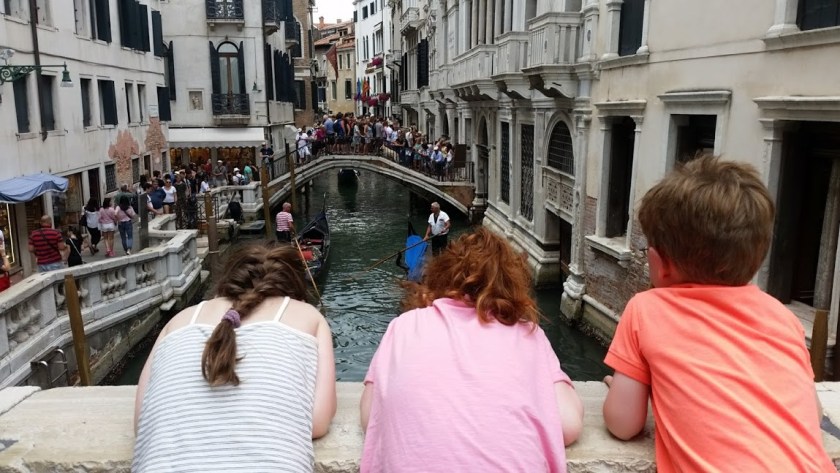 We had ice-cream (of course) and a wander up to Rialto Bridge, where we took a family selfie that included only two of us, as the other three were far too tired and busy with ice-cream to bother with the family selfie.